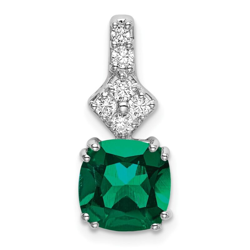 14k White Gold 1/5 carat Lab Grown Diamond VS/SI+ G+ and Lab Created Emerald Complete Pendant