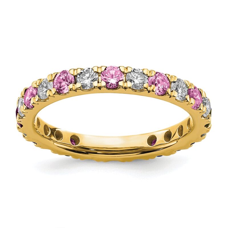 14k 1/2 carat Lab Grown Diamond VS/SI+ G+ and Lab Created Pink Sapphire Size 7.5 Eternity Band