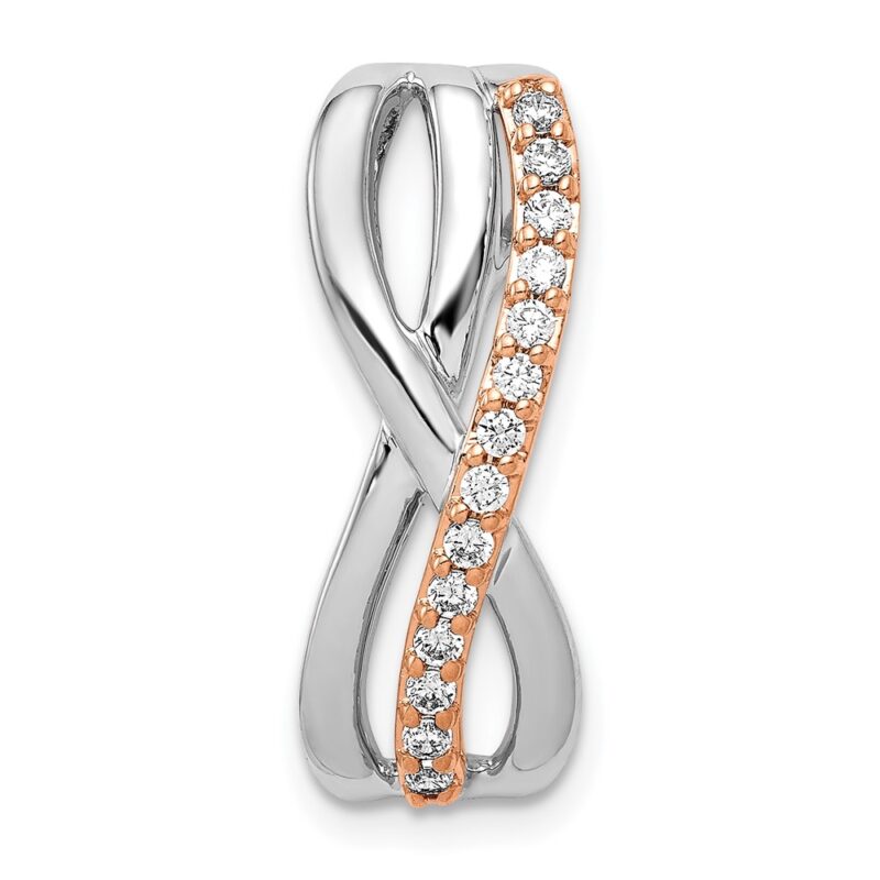 14k Rose and White Gold 1/5 carat Diamond Fancy Twisted Chain Slide
