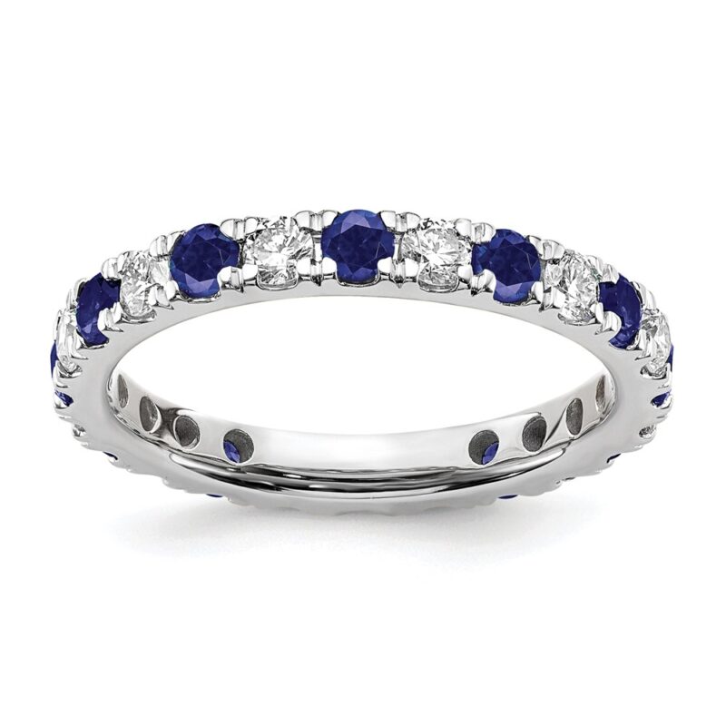 14k White Gold 3/4 carat Lab Grown Diamond VS/SI+ G+ and Lab Created Blue Sapphire Size 4 Eternity Band