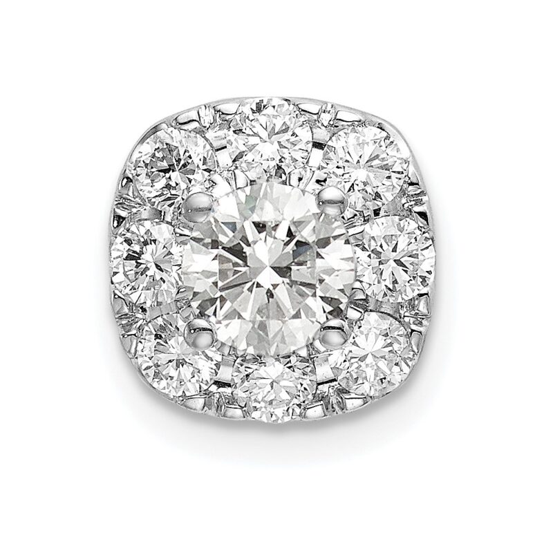 14k White Gold 1 carat Lab Grown Diamond VS/SI+ G+ Complete Cushion Halo Chain Slide Pendant