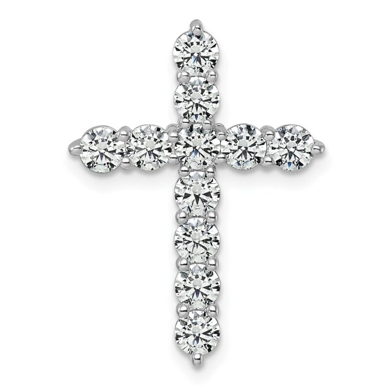 14k White Gold 2 carat Lab Grown Diamond VS/SI+ G+ Complete Cross Chain Slide Pendant