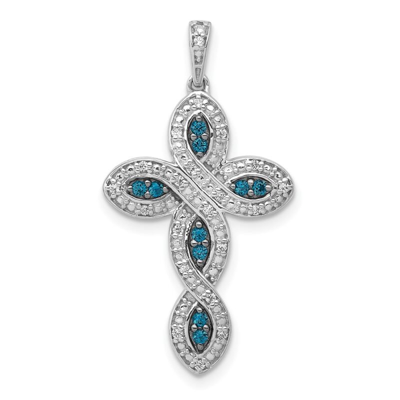 14k White Gold 1/5 carat White and Blue Diamond Cross Pendant