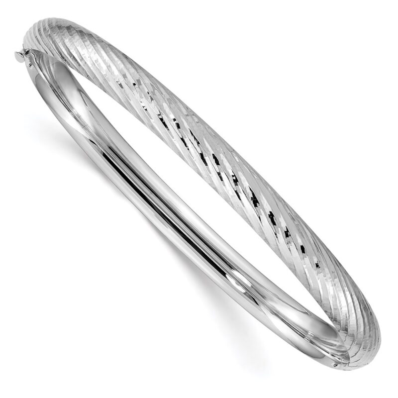 14k White Gold 4/16 Polished Textured 6.00mm Hinged Oval Bangle Bracelet