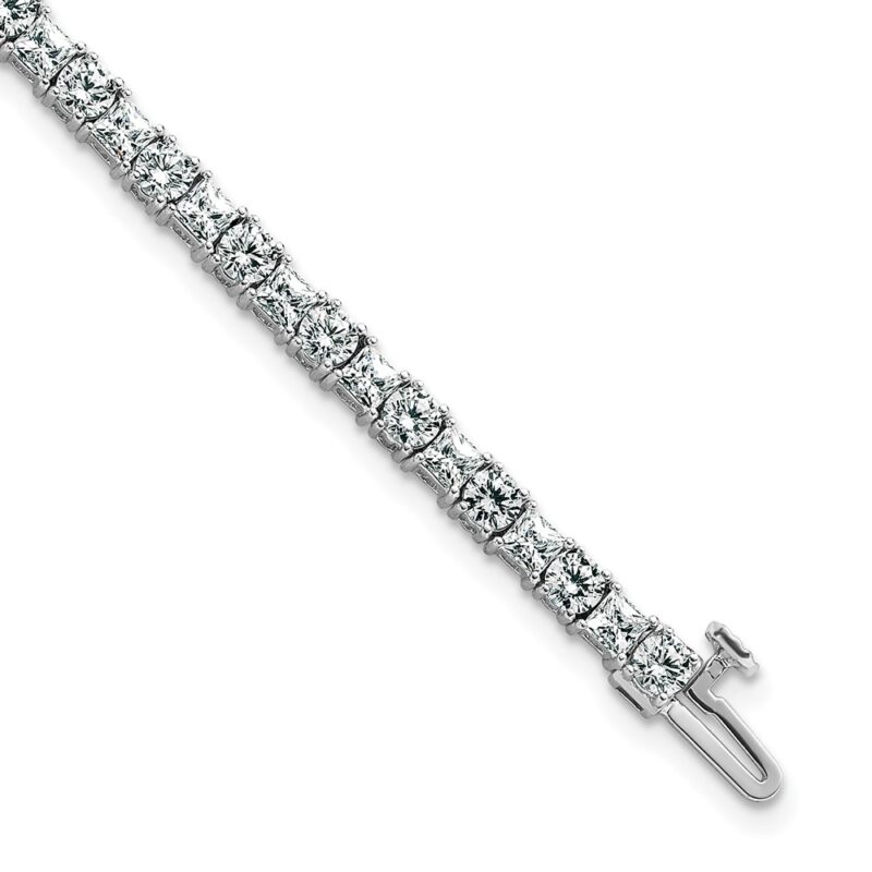 14k White Gold 7 carat Lab Grown Diamond VS/SI+ G+ Complete Princess and Round Tennis Bracelet