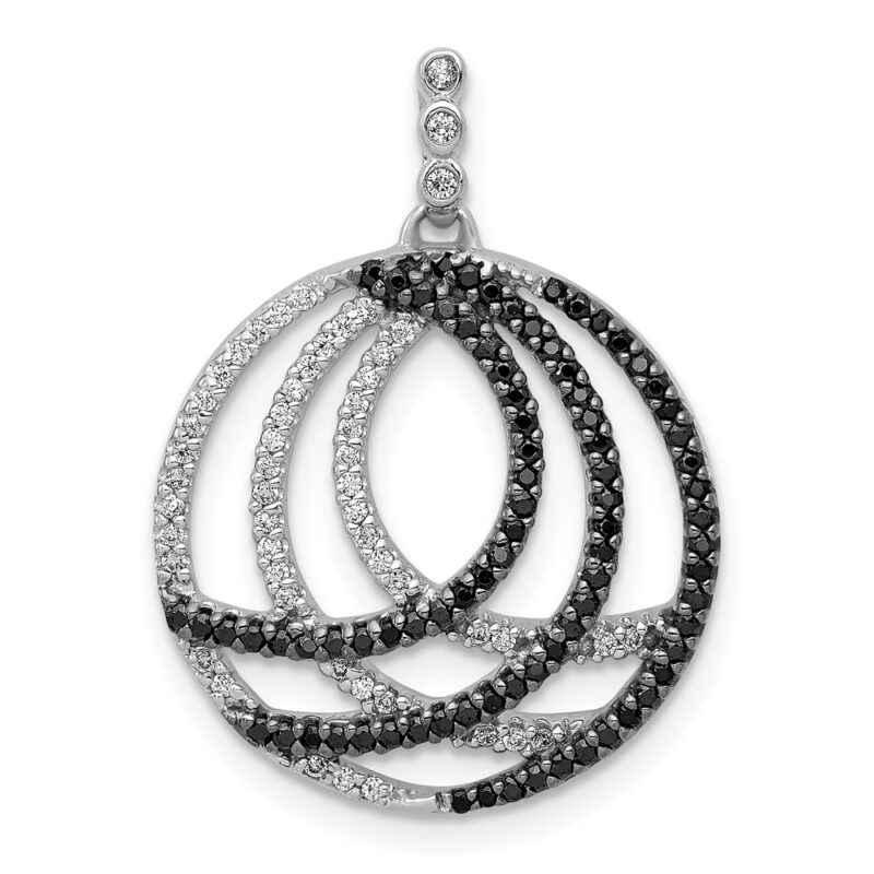 14k White Gold 3/8 carat White and Black Diamond Fancy Circle Chain Slide