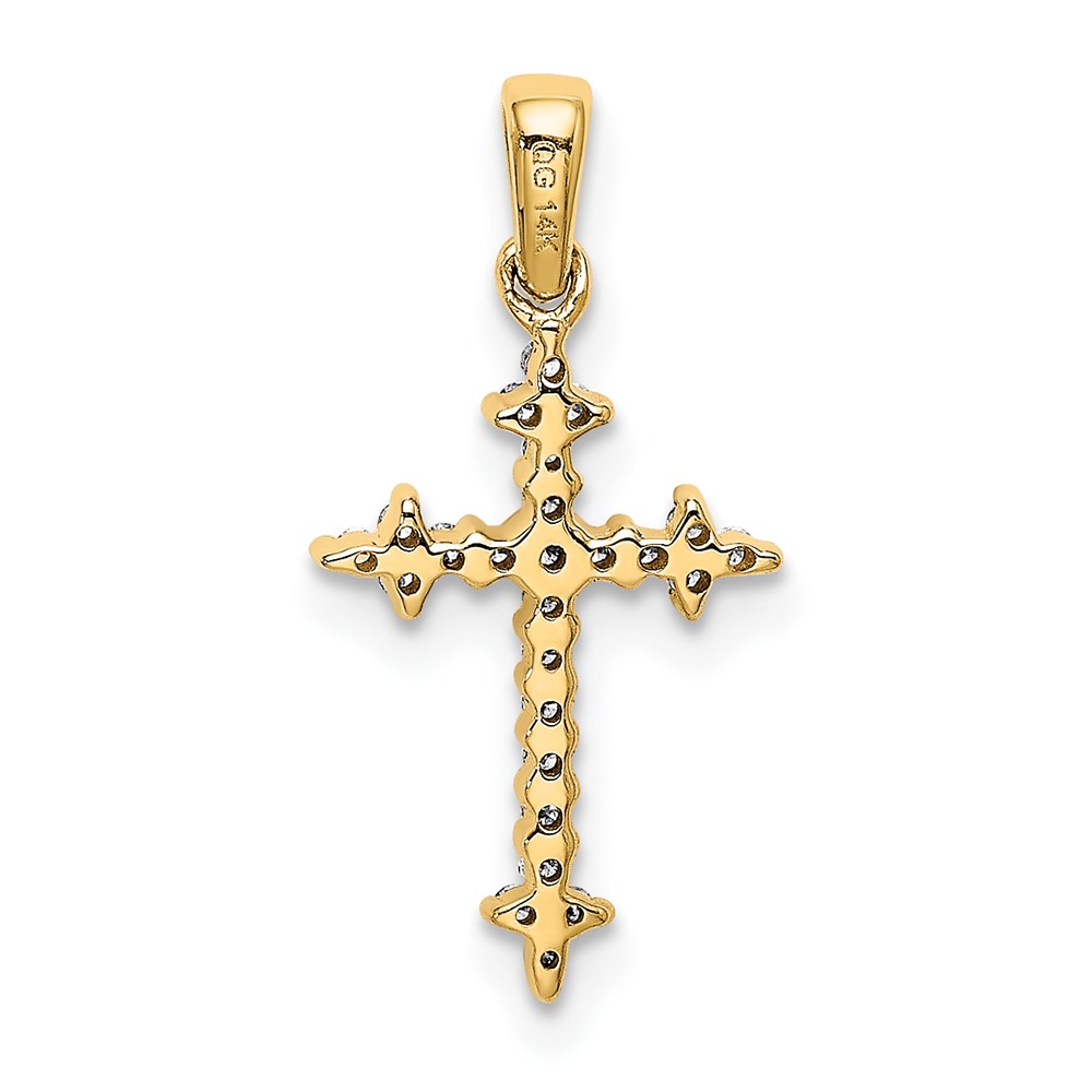 14k White Gold 1/10 carat Diamond Fleur e Lis Cross Pendant