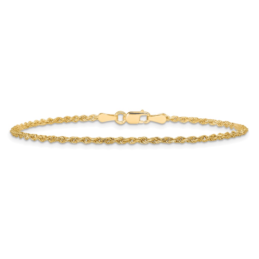 14K 2.25mm Diamond-cut Rope with Lobster Clasp Anklet