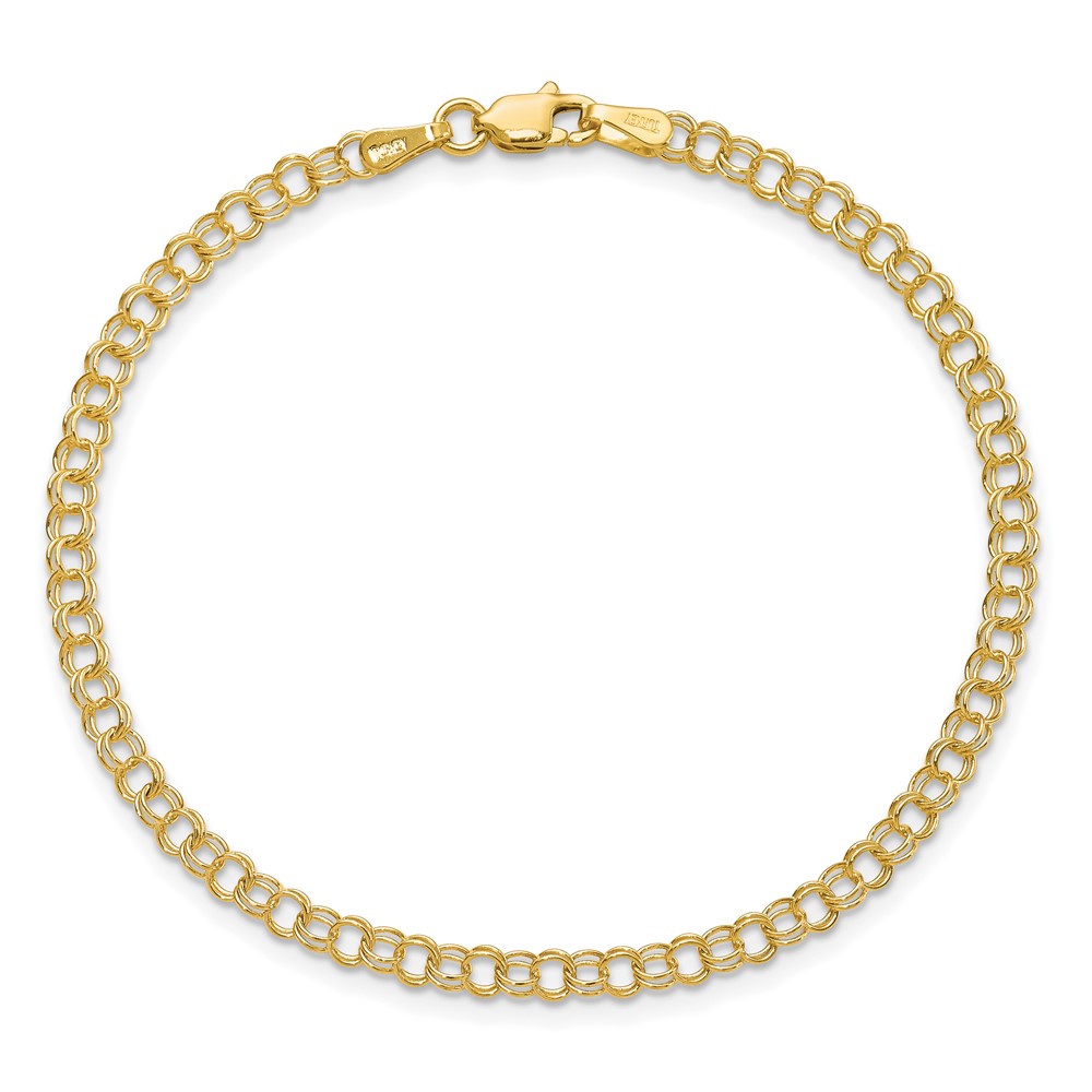 10k 7in 6.5mm Solid Double Link Charm Bracelet