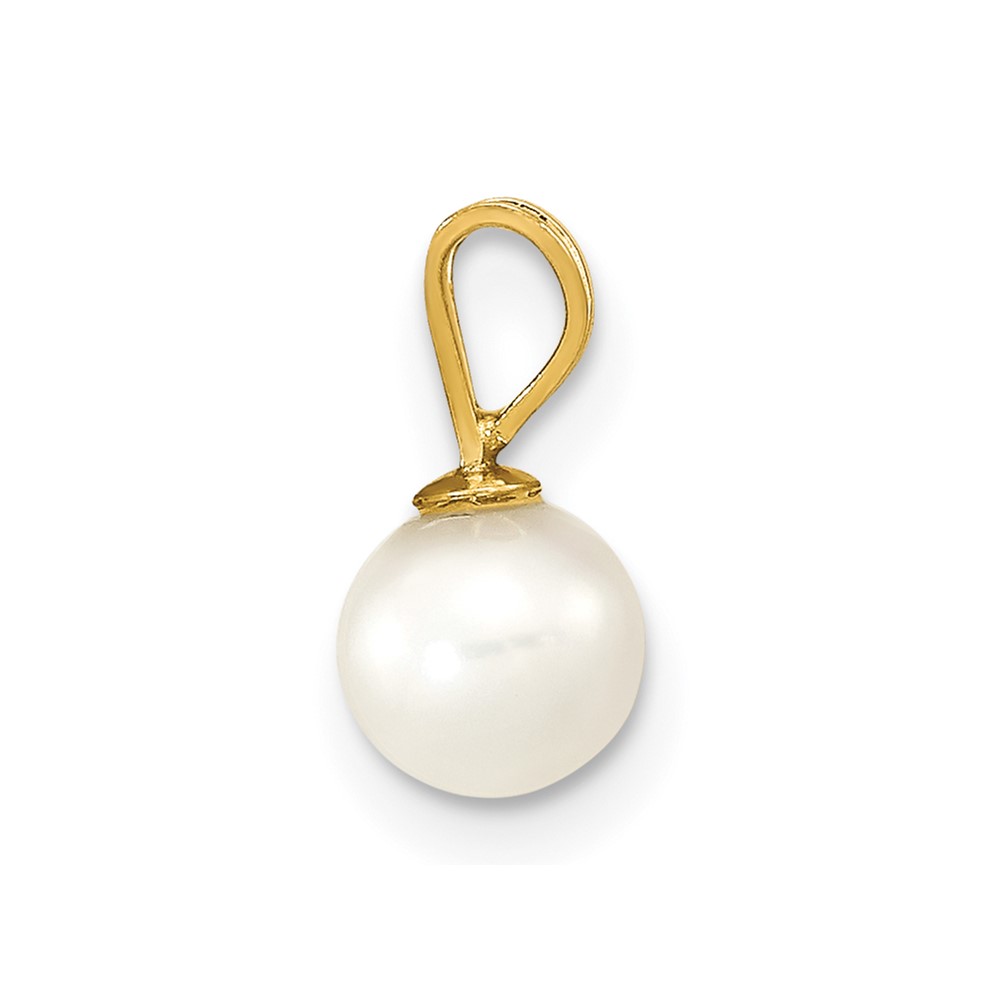 10K 6-7mm White Round Freshwater Cultured Pearl Pendant