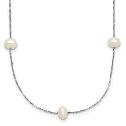 10k White Gold 4-5mm White Near Round Freshwater Cultured Pearl 8-station Necklace