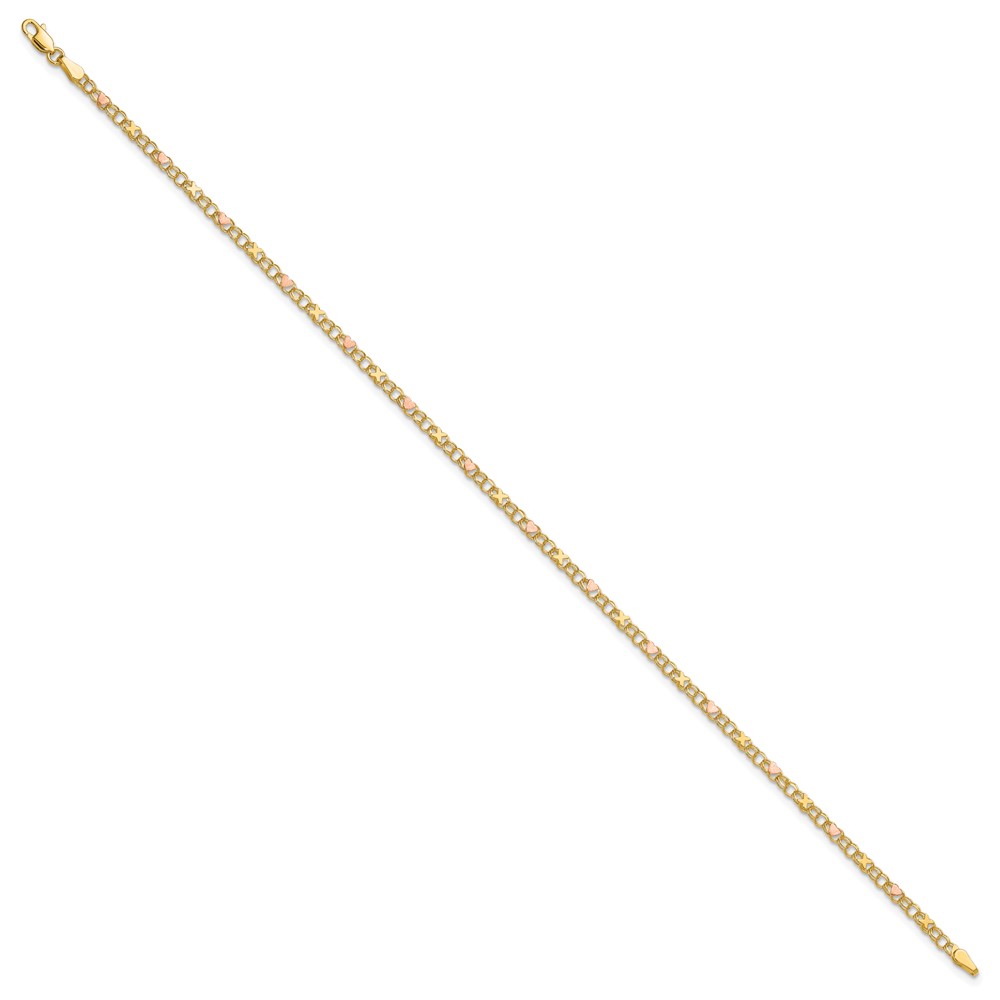 10k and Rose Rhodium Polished and Satin X-and-Heart Anklet