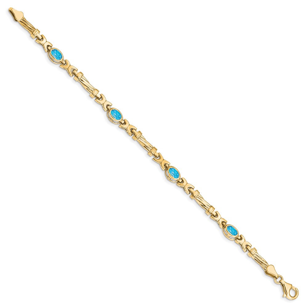 14k Complete Diamond and Oval Opal X-design 7.25 inch Bracelet