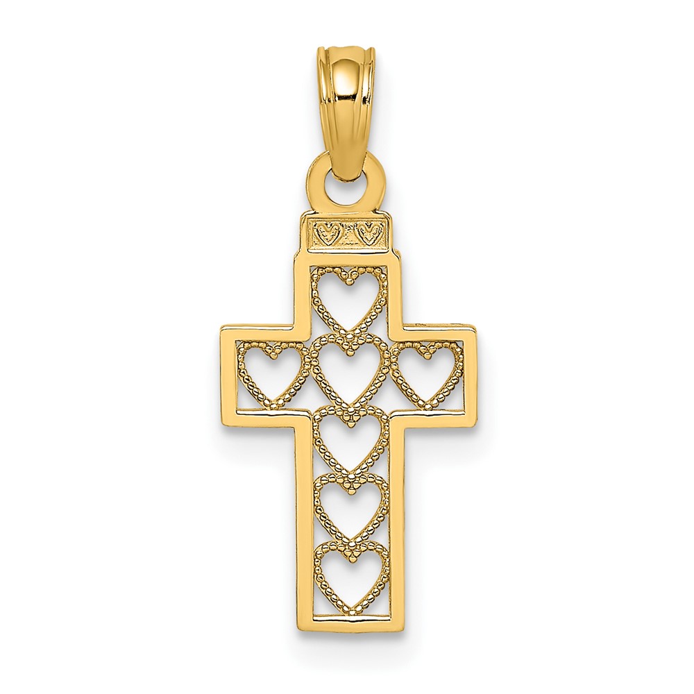 14k Two-tone White and Rose Heart with Cross 1/20 carat Diamond Pendant