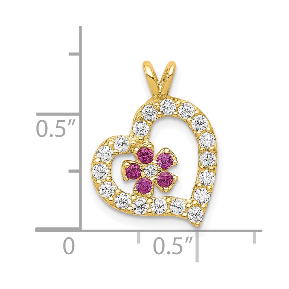 10k CZ Heart & Flower Pendant