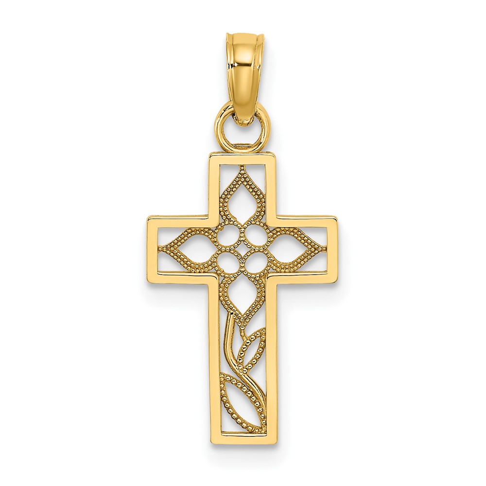 10K Textured Swirl Design Crucifix Charm