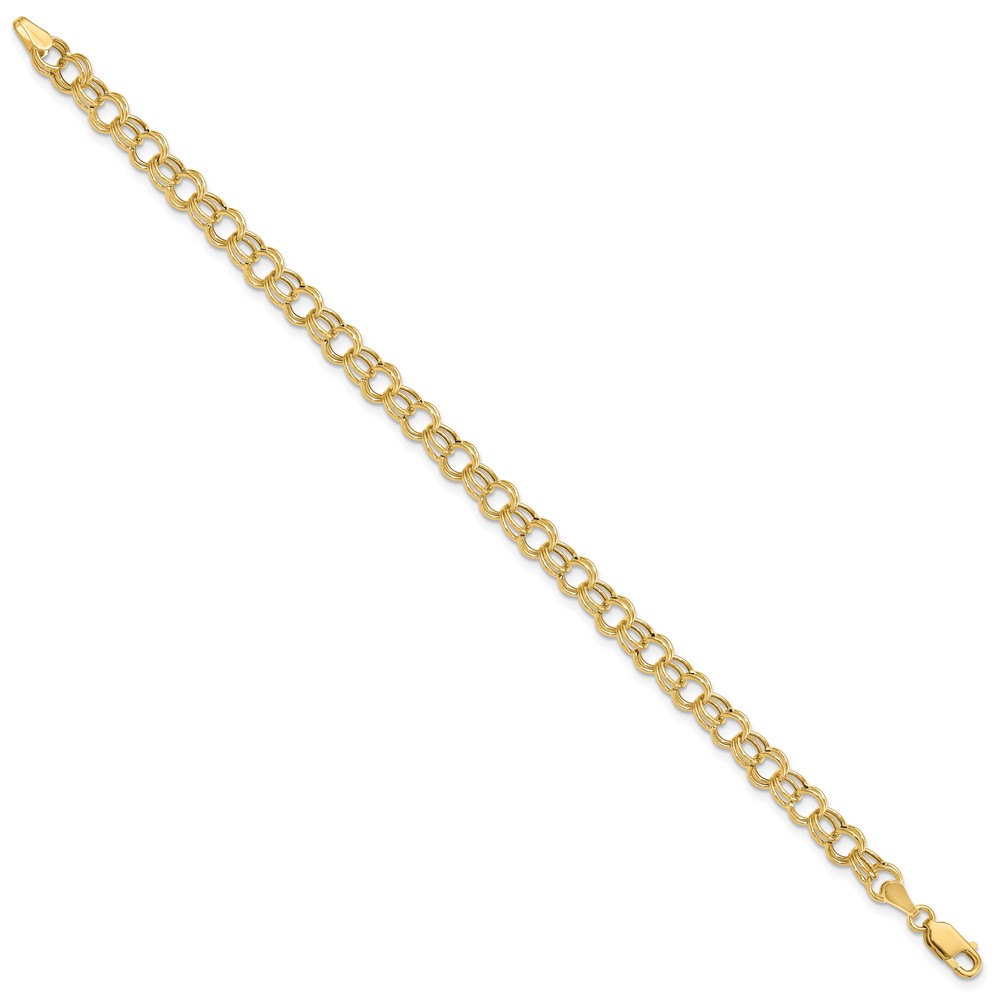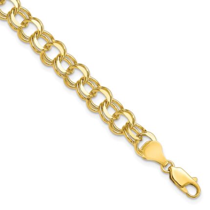 10k 7in 6.5mm Solid Double Link Charm Bracelet
