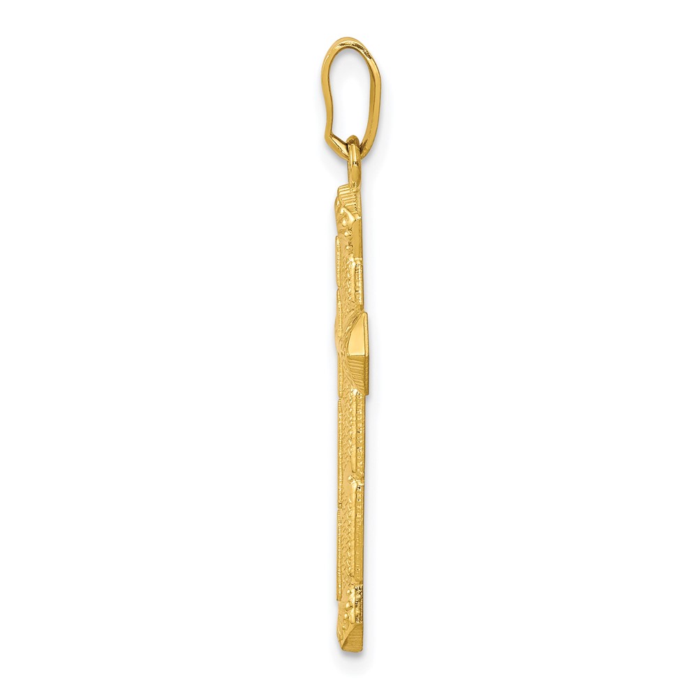 14k White Gold Polished Diamond-cut Fancy Cross Pendant