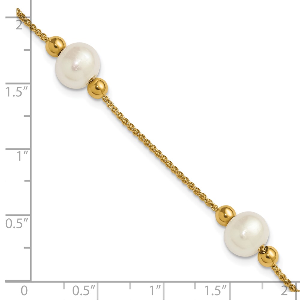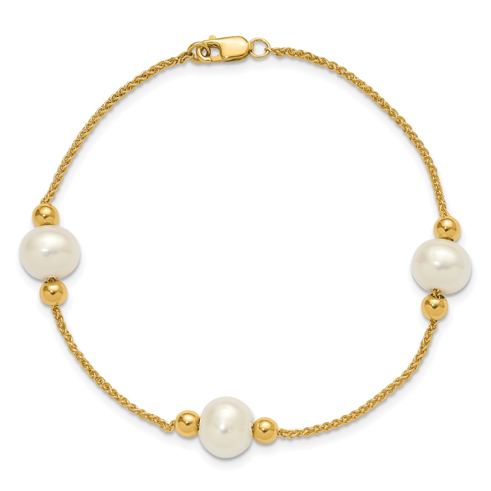 10k Polished 8-9mm Semi-Round White Freshwater Cultured Pearl 3-Station 7.5 inch Bracelet