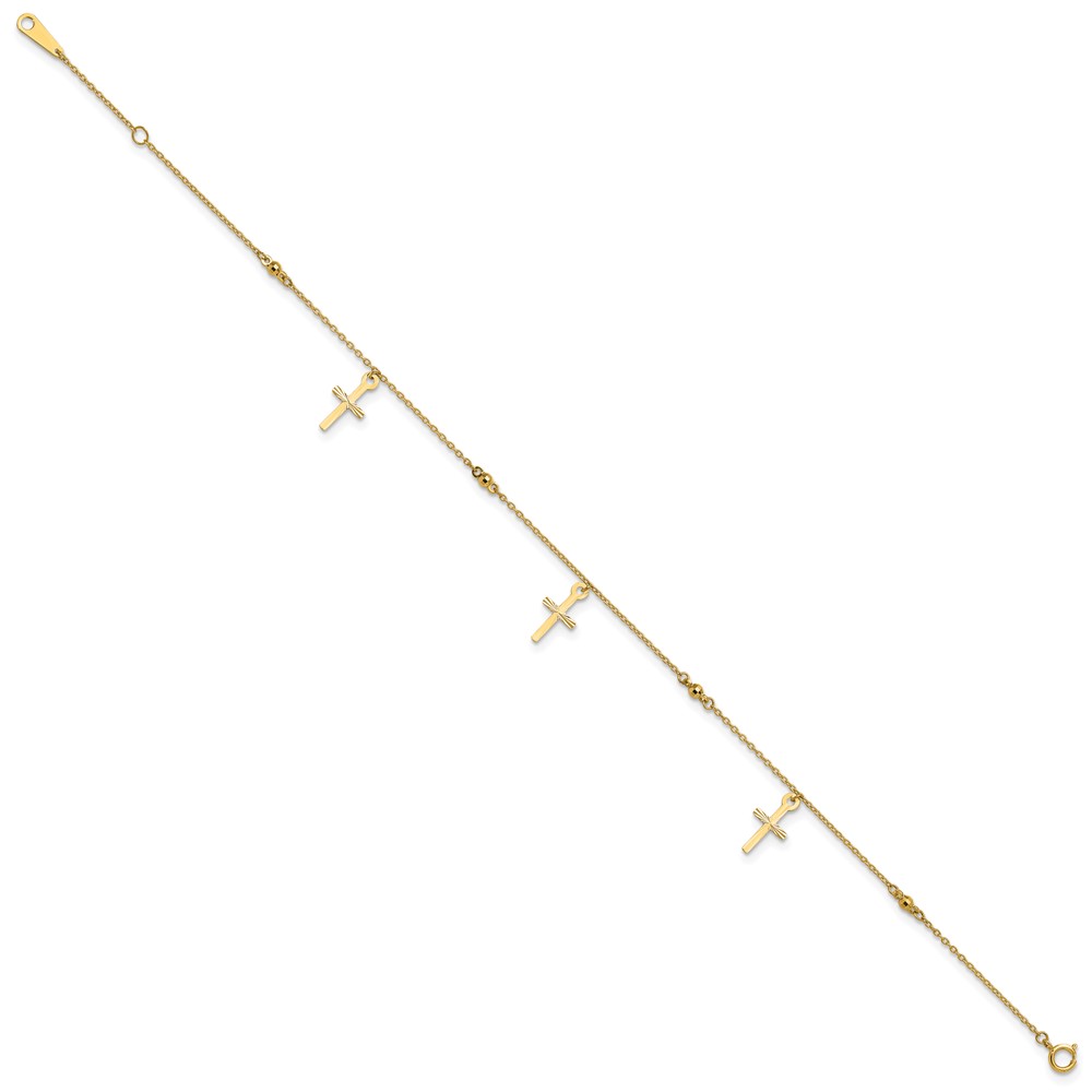 10k Polished Cross Dangle and Beads Plus Extender – Total Anklet