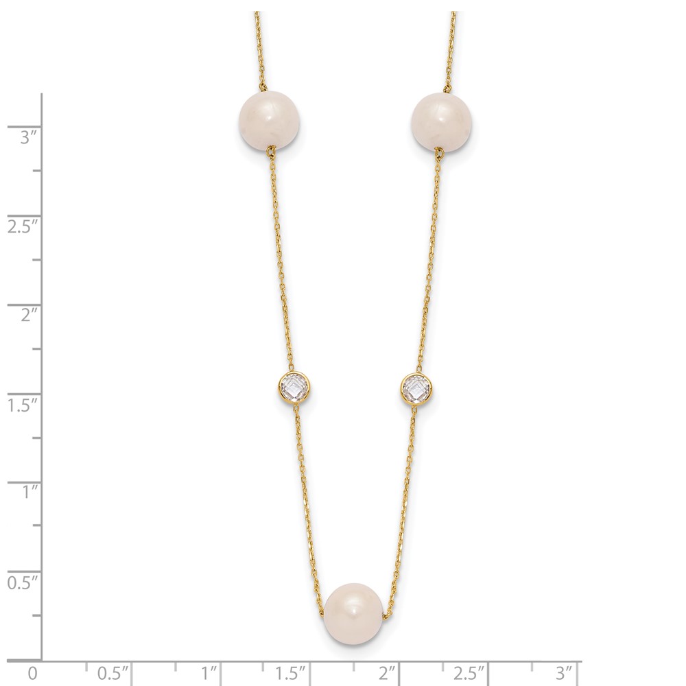 10K Polished CZ and 7-8mm FWC Pearl 7 Station Necklace