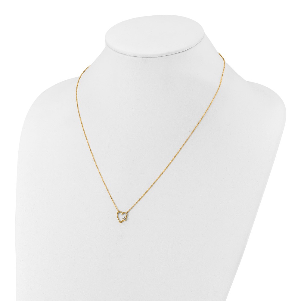 10K Polished CZ Heart Necklace
