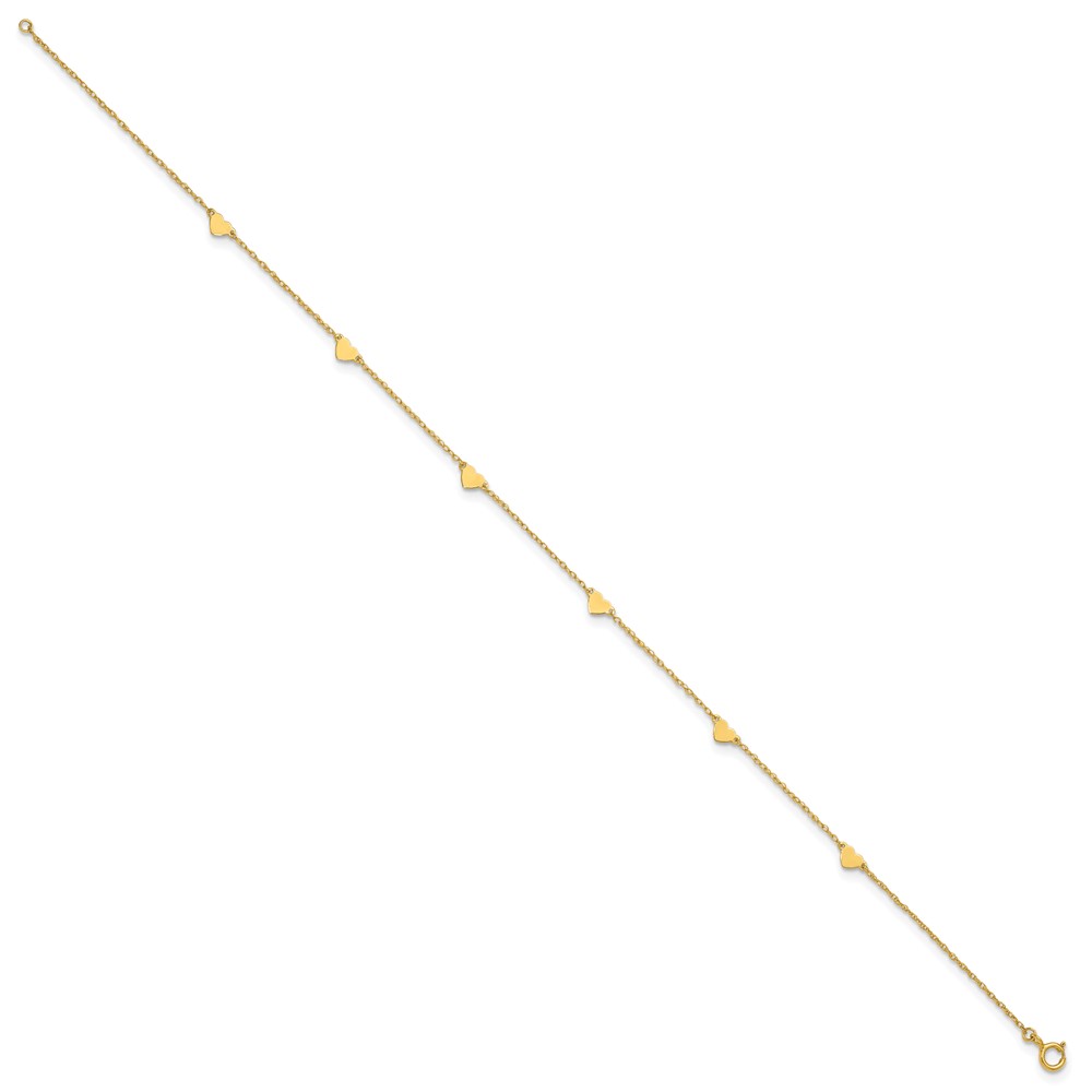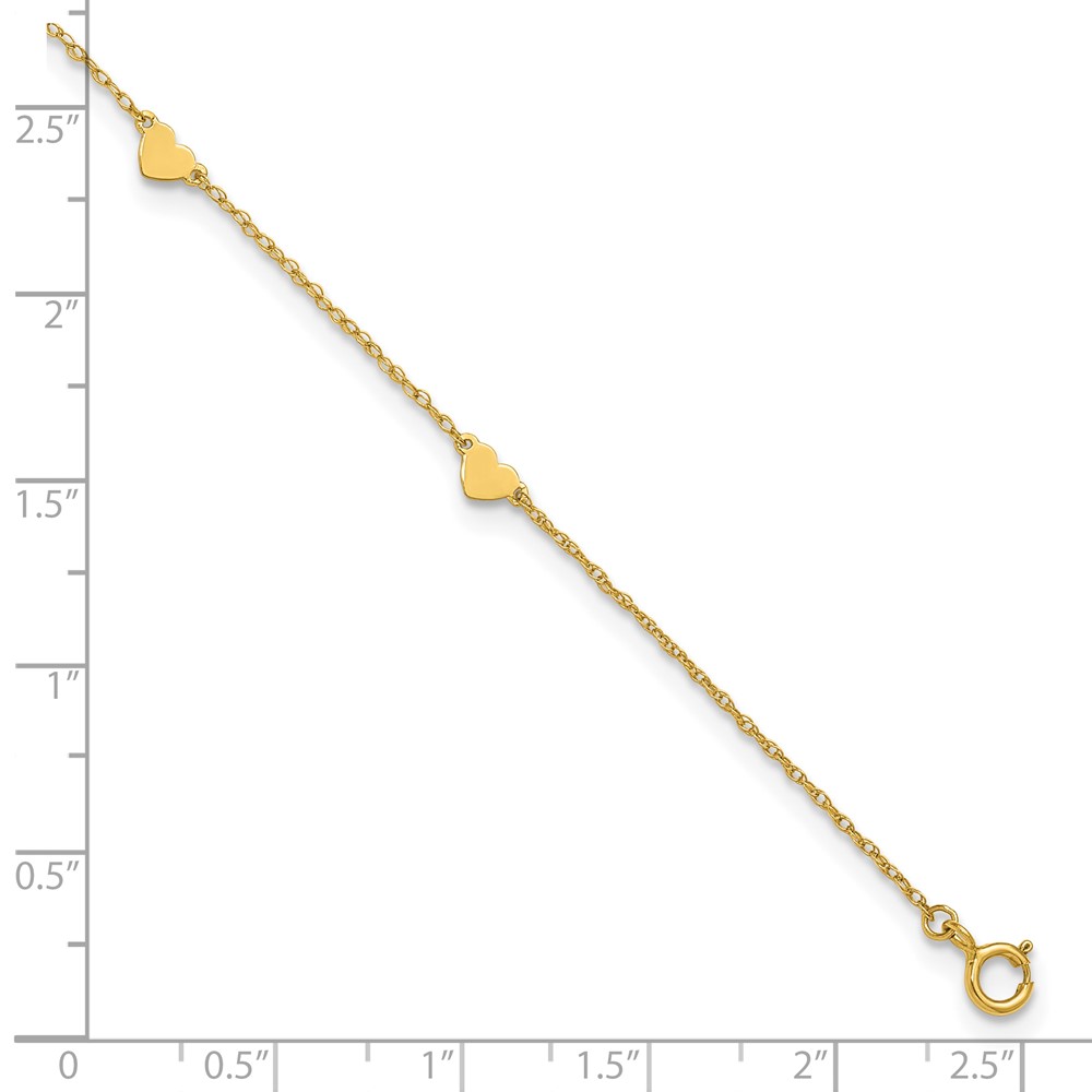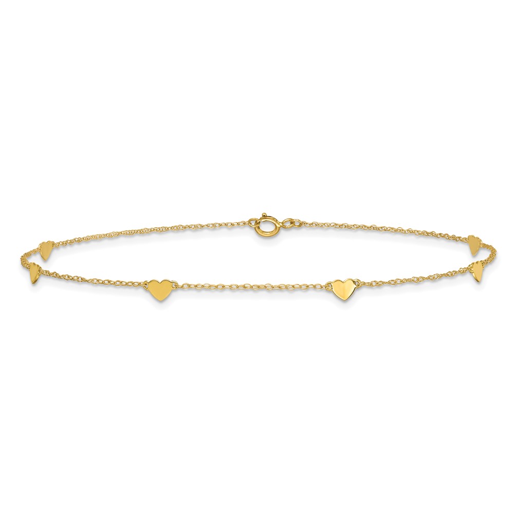 10k and Rose Rhodium Polished and Satin X-and-Heart Anklet