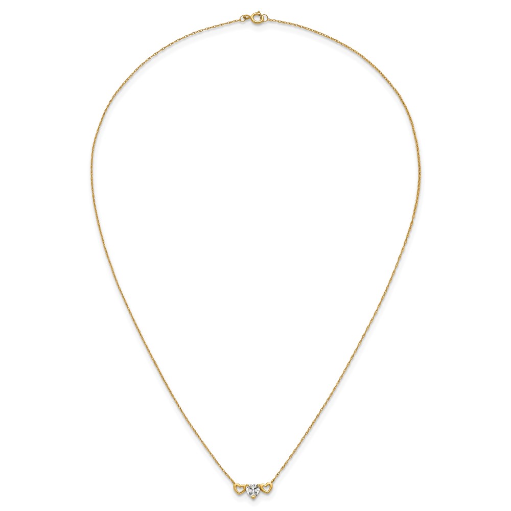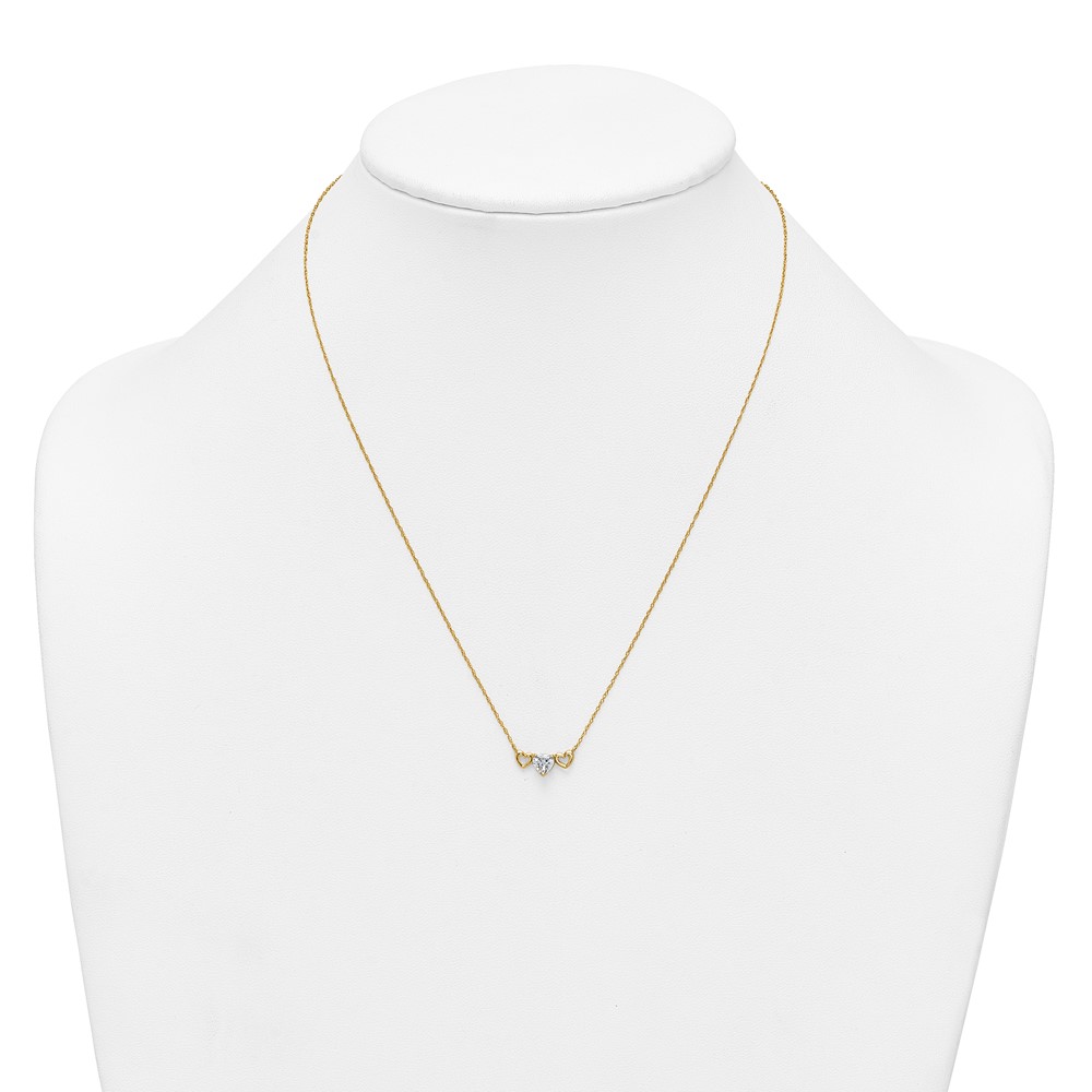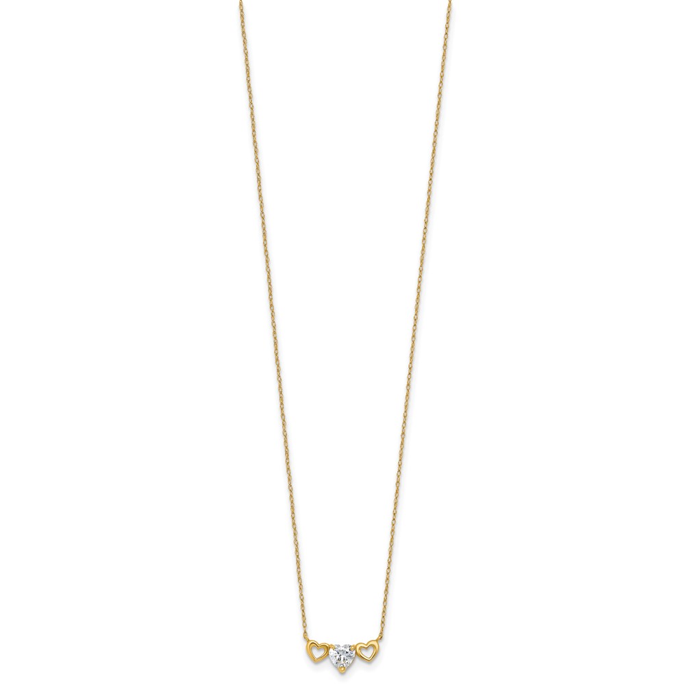 10k Polished Heart CZ Center with Two Open Hearts 18.Necklace