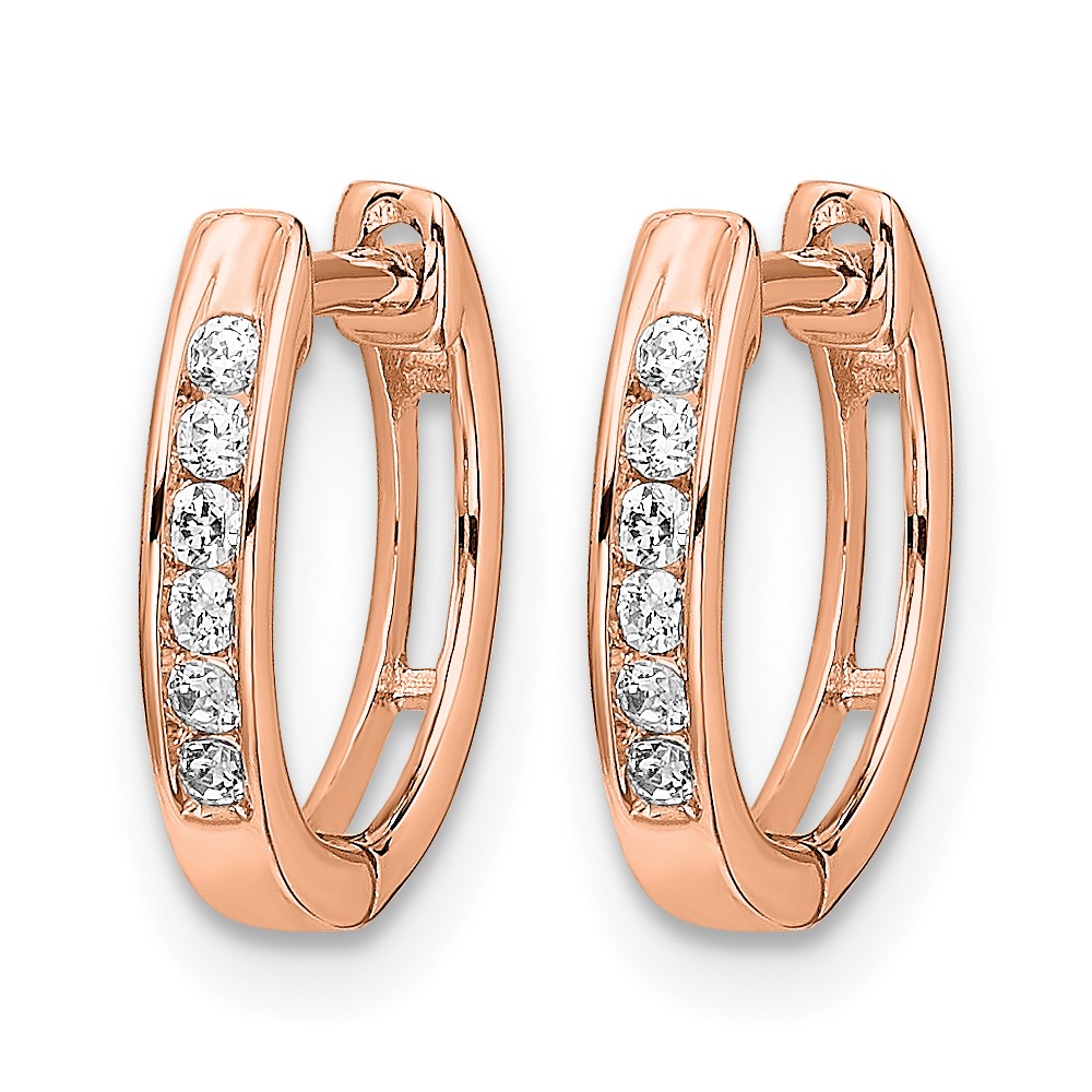 14k Rose Gold Polished Diamond Hinged Hoop Earrings