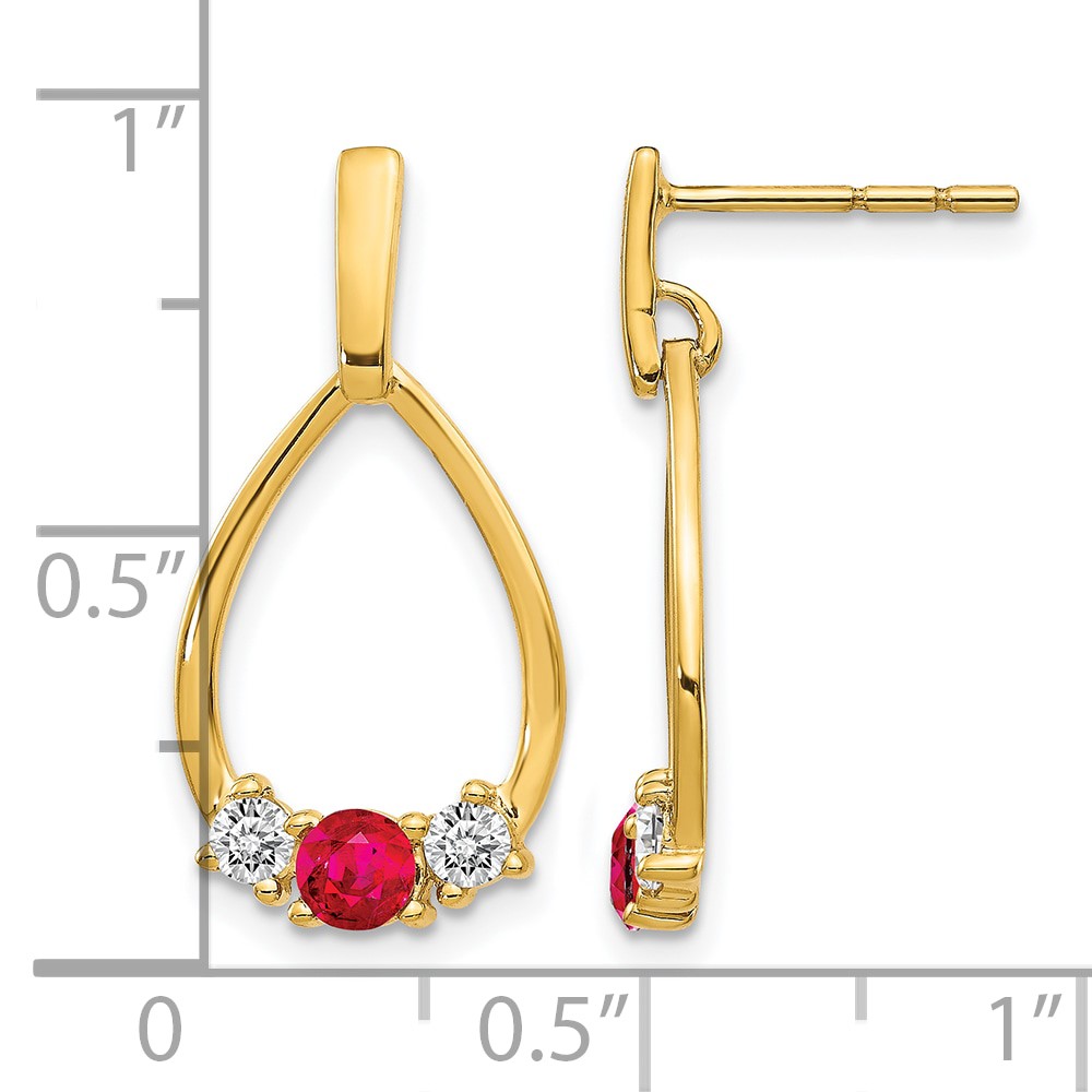 14k Ruby and White Sapphire Teardrop Post Dangle Earrings