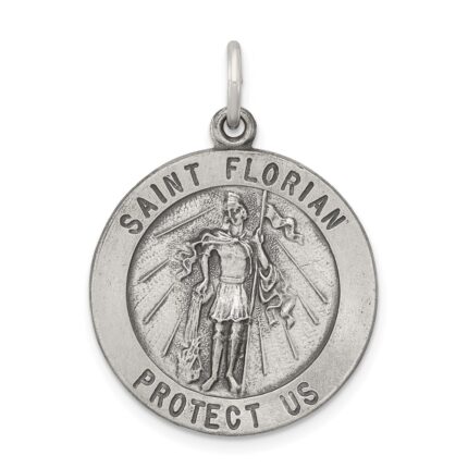 14k Polished and Satin Large Solid St. Florian Fire Dept. Badge Medal Pendant