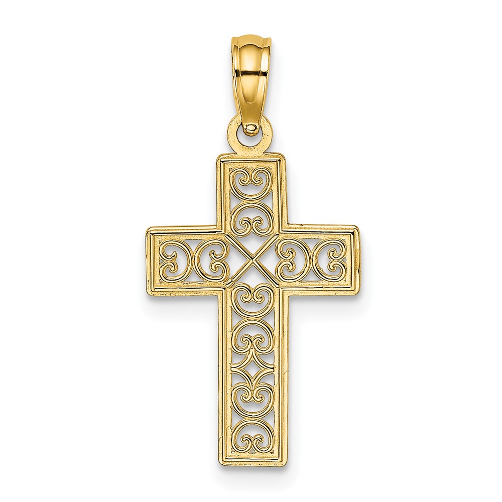 10K Textured Lace Center Cross Charm