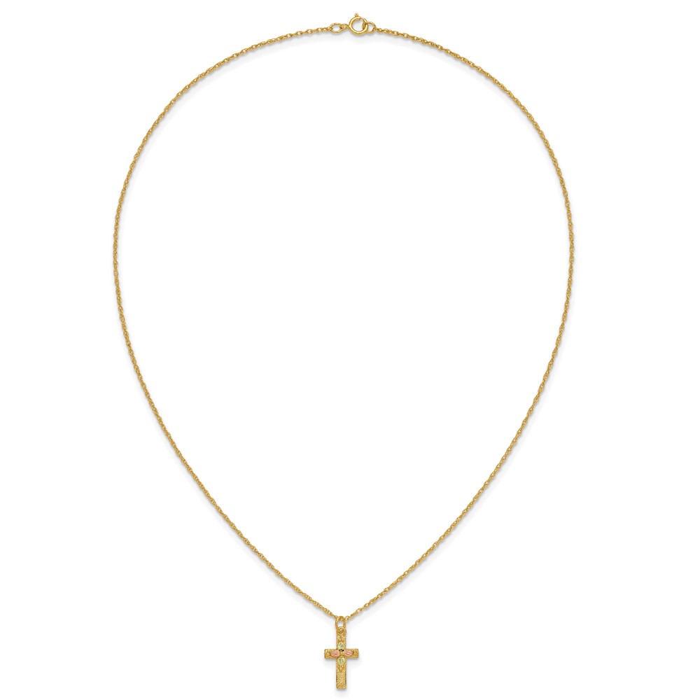 10k Tri-Color Black Hills Gold Rose in Heart Necklace