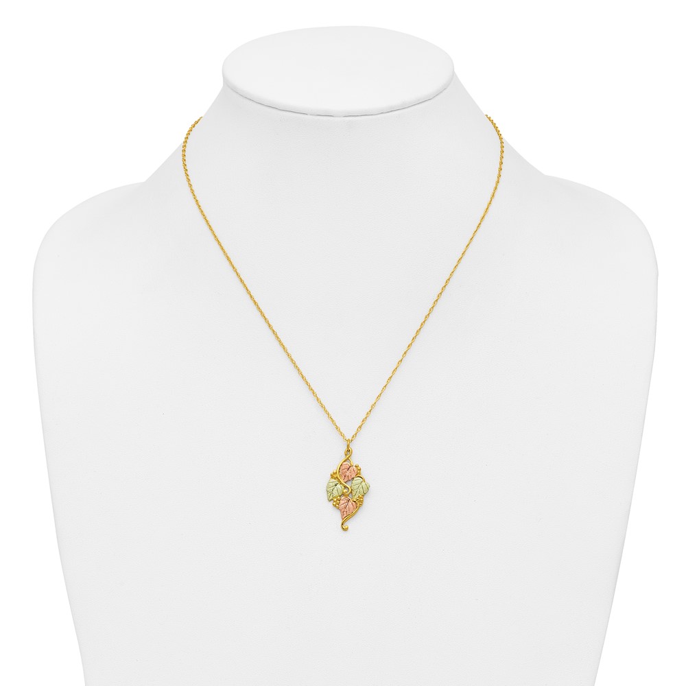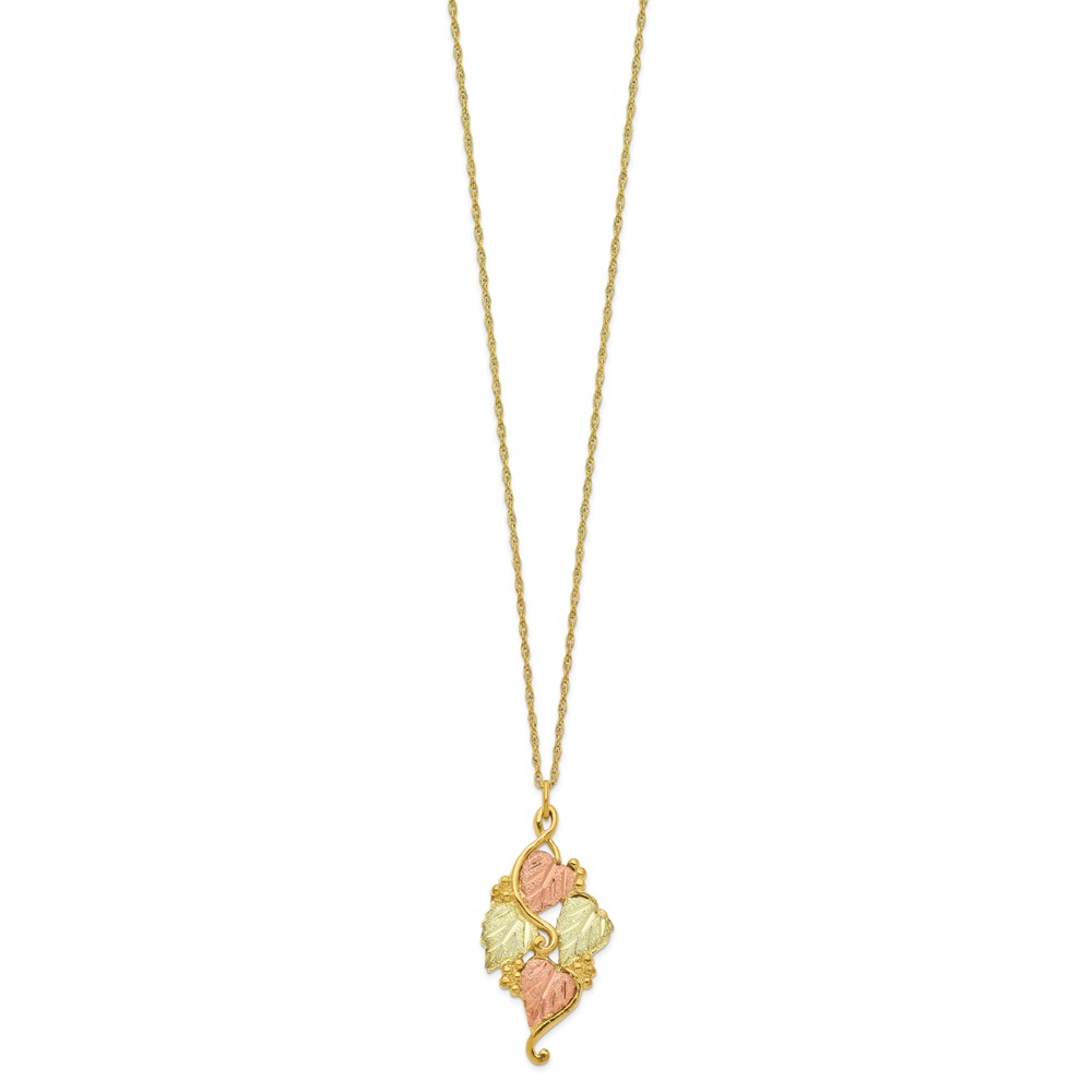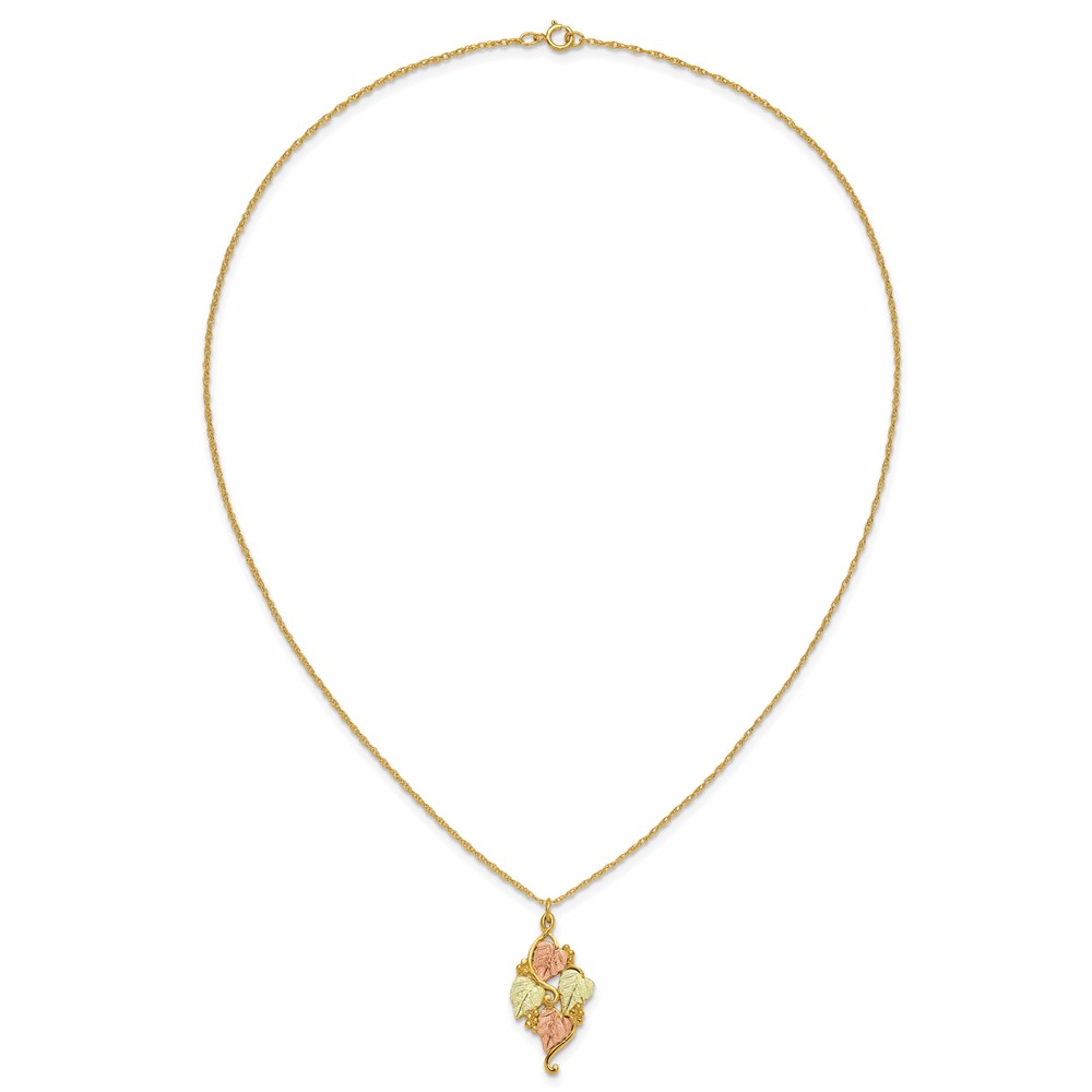 10k Tri-color Black Hills Gold Diamond Rose Necklace