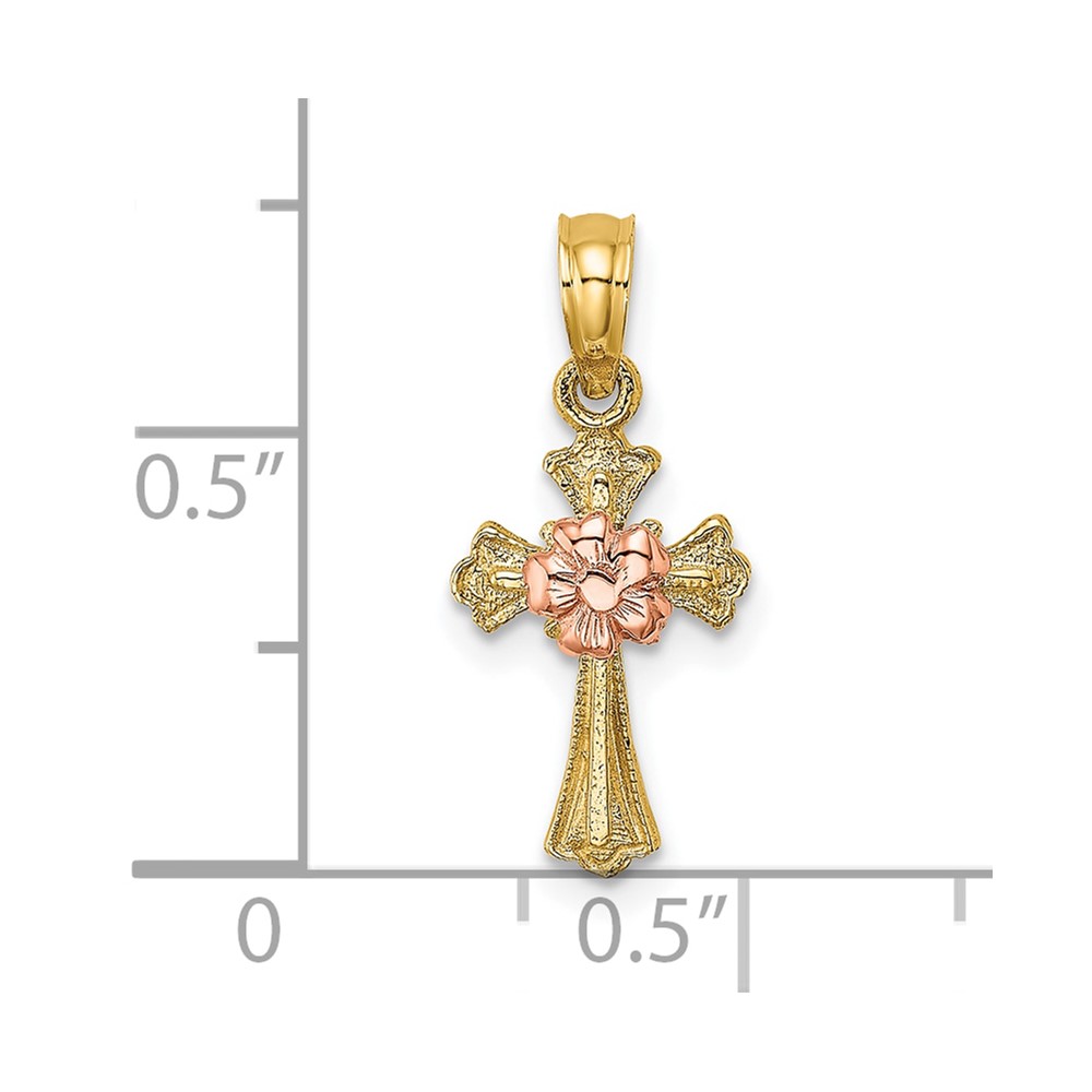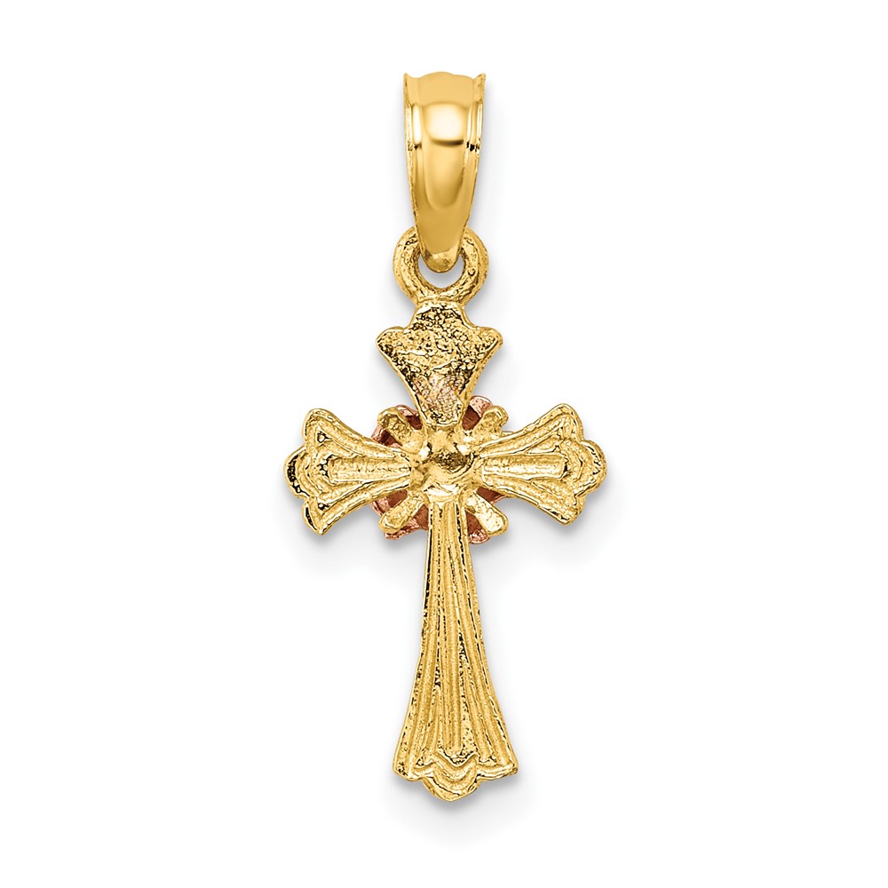 10K Two-Tone Twisted Cross w/ Heart Charm