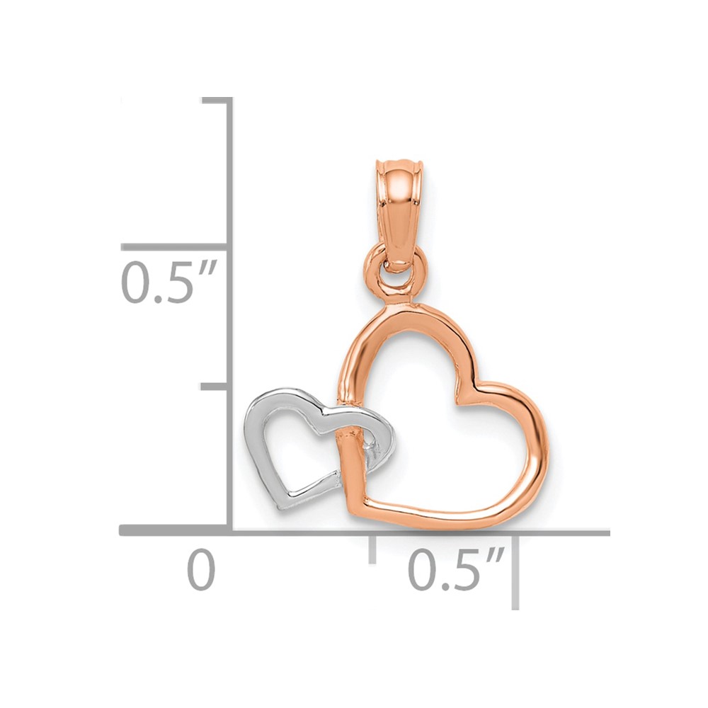 10K Two-tone Polished Intertwined Double Heart Pendant