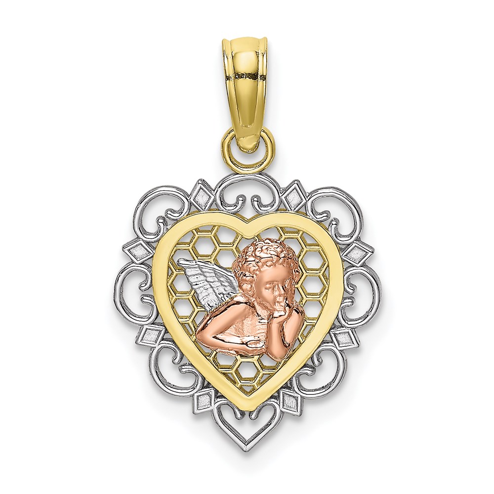 10K Two-tone w/Rhodium Small Angel In Heart Charm
