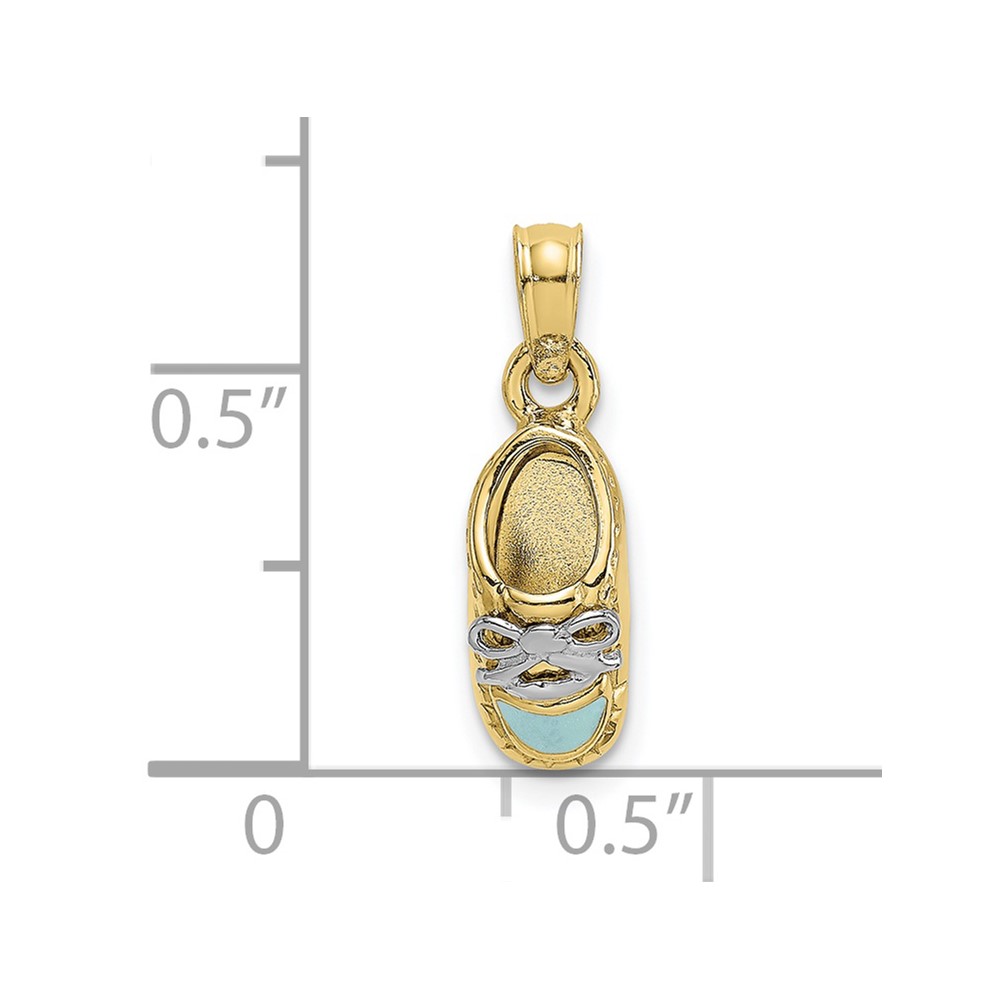 10K w/Rhodium 3-D Light Blue Enamel Baby Shoe Charm