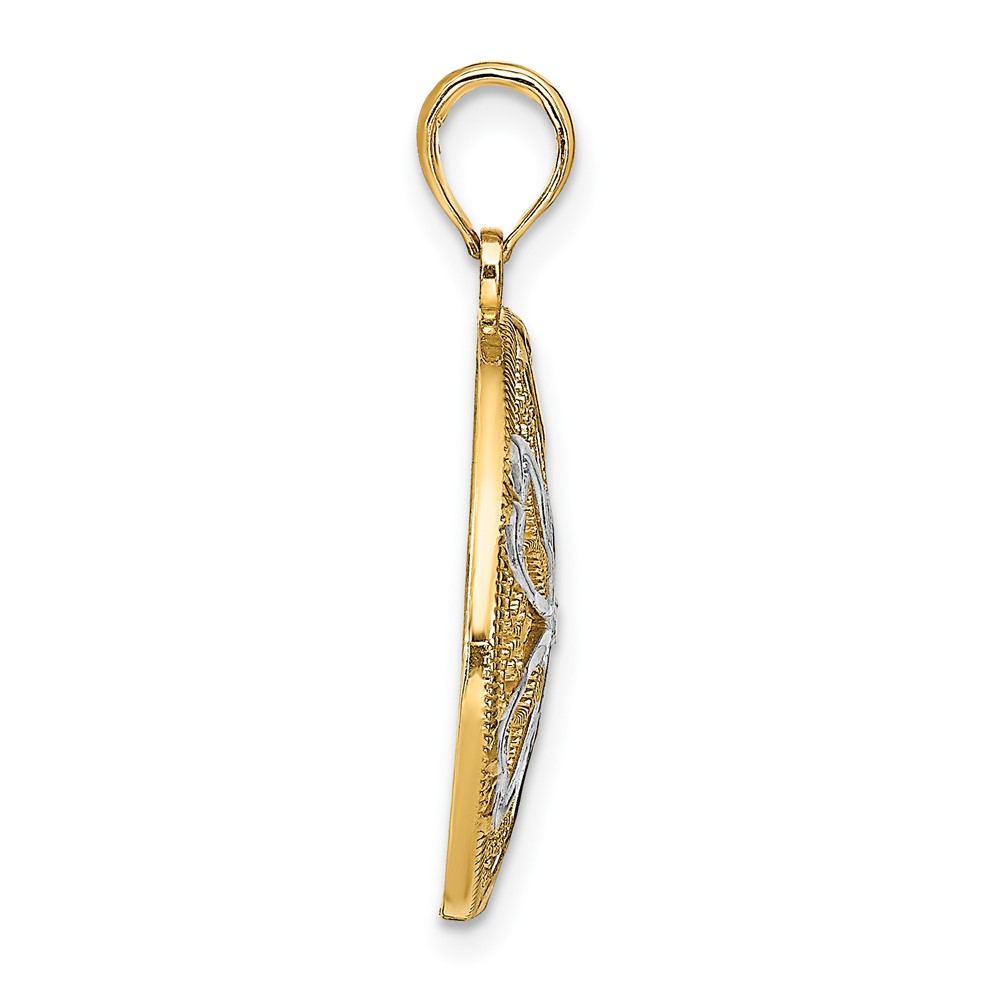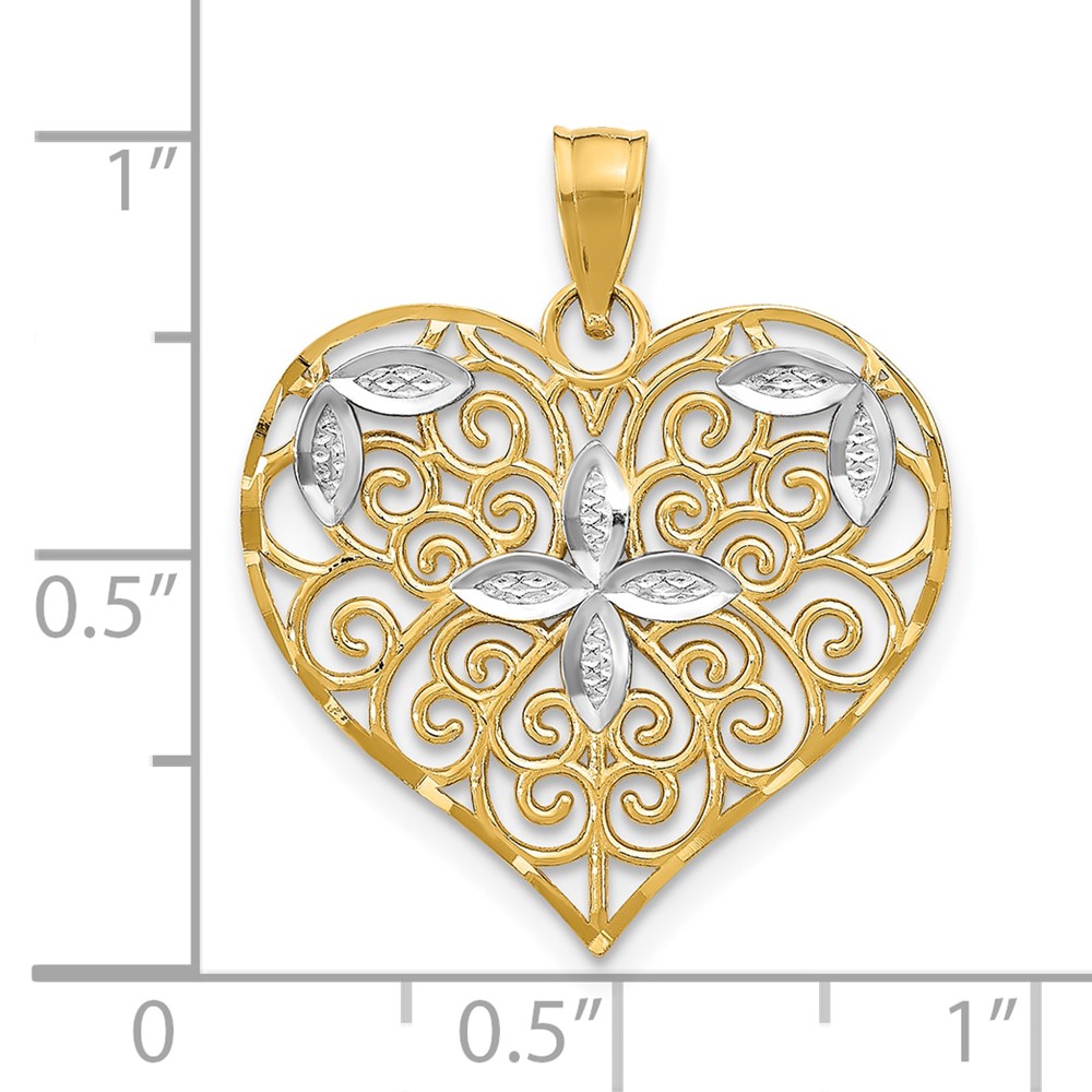 10k w/Rhodium Cut-Out Filigree Flower and Heart Charm