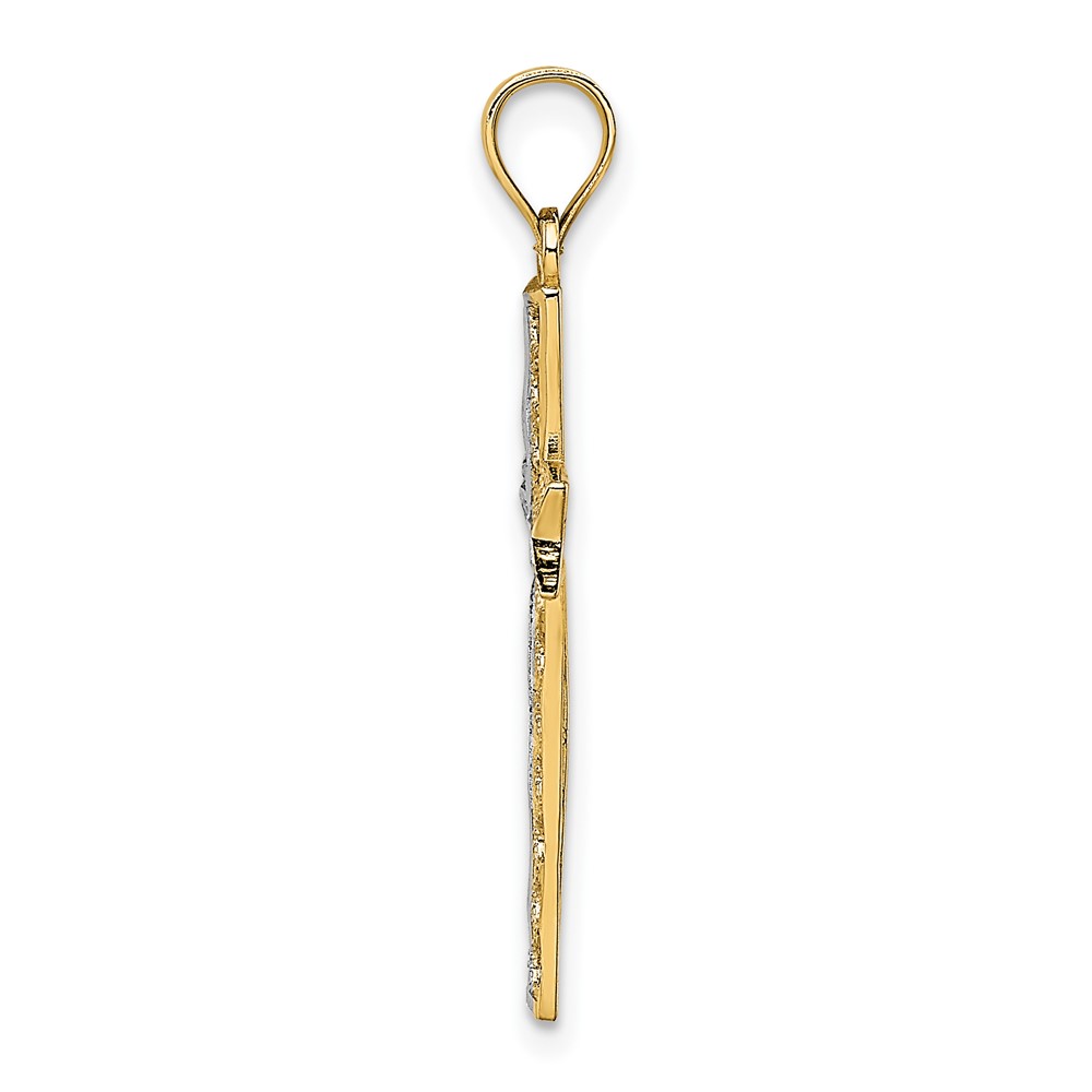 10K w/ Rhodium D/C Filigree Cross Pendant