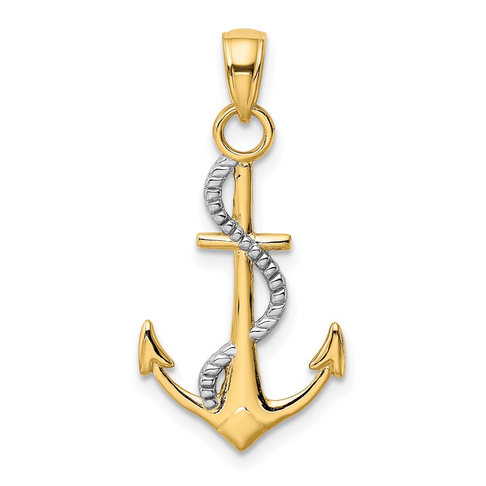 10K w/Rhodium Polished Anchor W/Rope Pendant