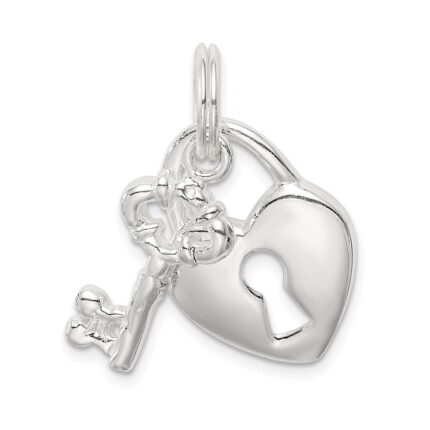 14k White Gold 1/10 carat Diamond Heart Key Pendant