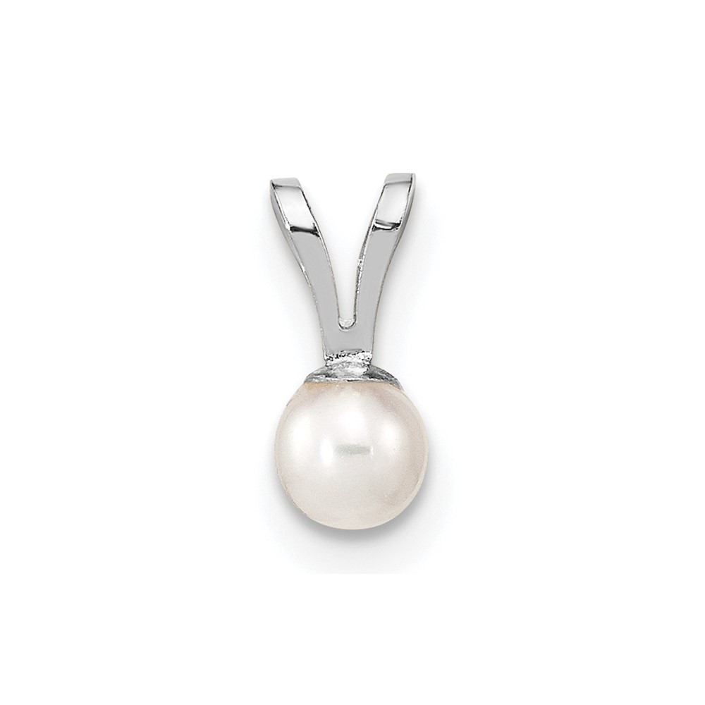 10k White Gold 3-4mm White Round Freshwater Cultured Pearl Pendant