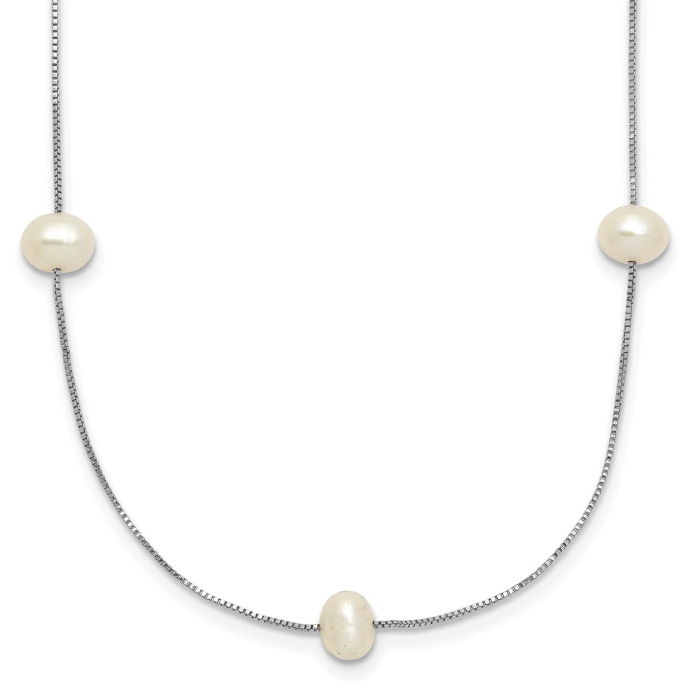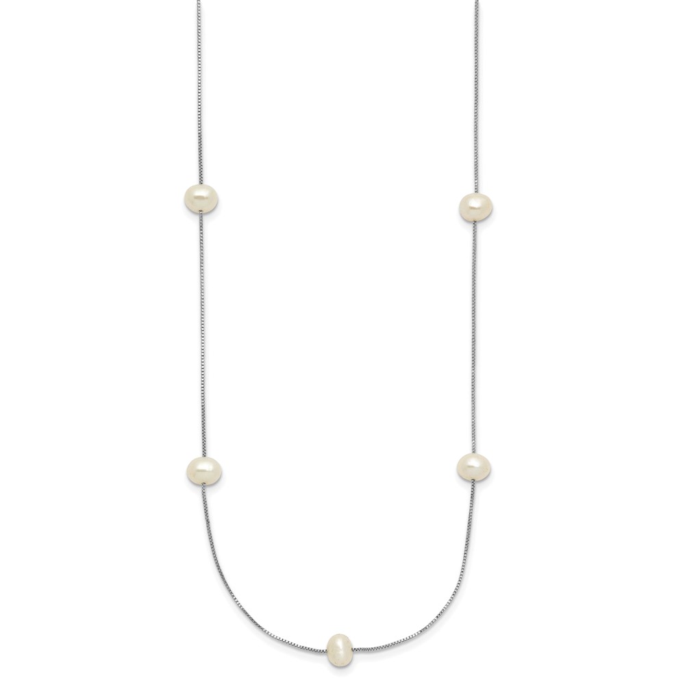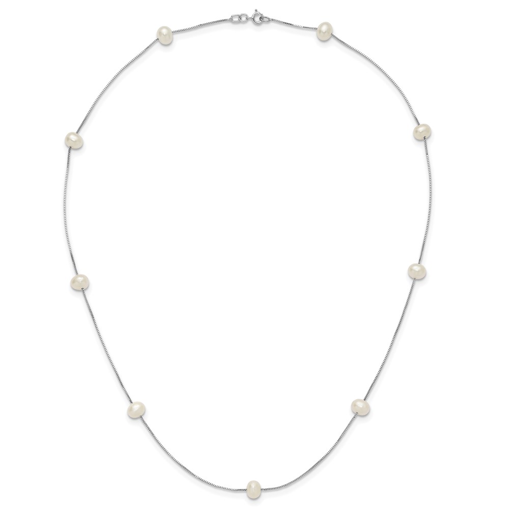 10K White Gold 5-6mm White Round Freshwater Cultured Pearl 9-station 18 inch Necklace