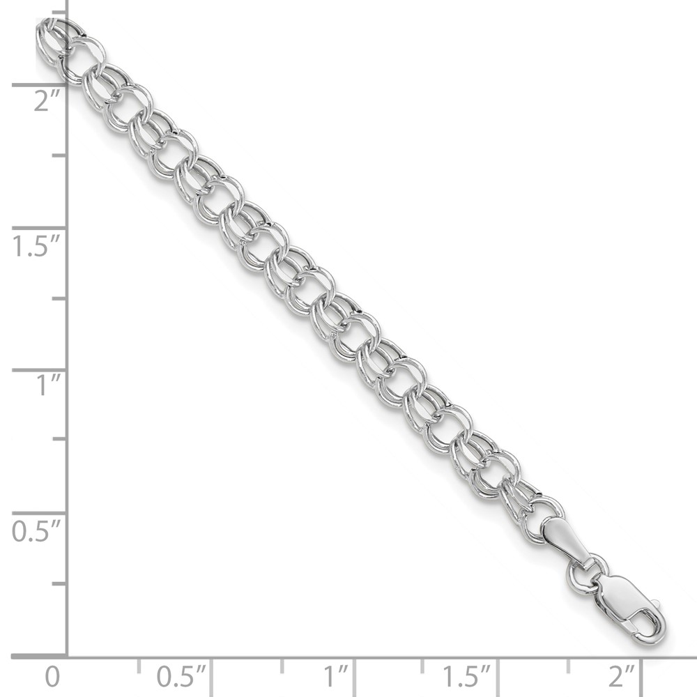 10k White Gold 6in 4.5mm Hollow Dia-cut Dbl Link Charm Bracelet