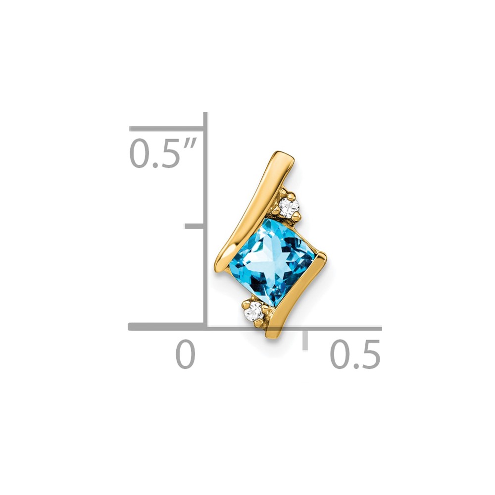 10k Yellow Gold Cushion Blue Topaz and Diamond Chain Slide