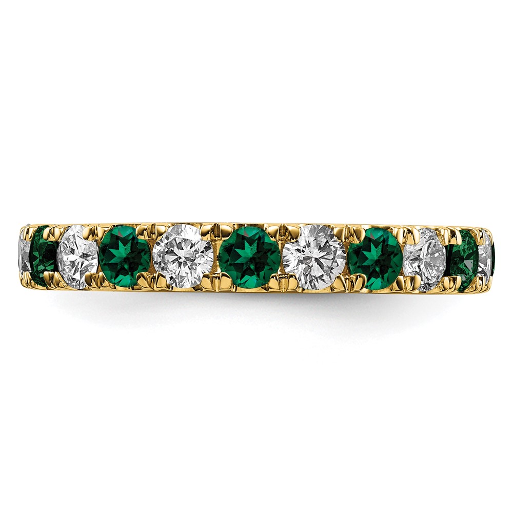 14k 3/4 carat Lab Grown Diamond VS/SI+ G+ and Lab Created Emerald Size 6.5 Eternity Band
