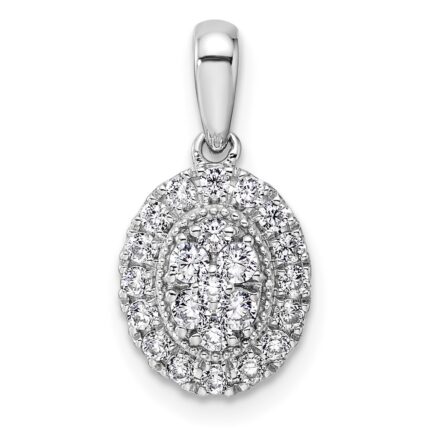 14k 1/2 carat Lab Grown Diamond VS/SI+ G+ Oval Semi Mount 9.9×6.9mm Center Halo Chain Slide Pendant