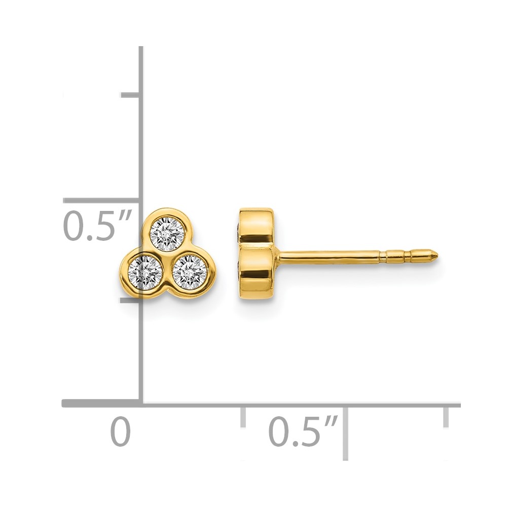 14k 1/4 carat Diamond 3-stone Bezel Earrings