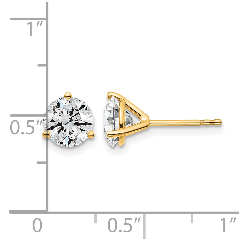14k 2 carat Certified Lab Grown Diamond VS/SI+ G+ Round Complete Three Prong Stud Earrings